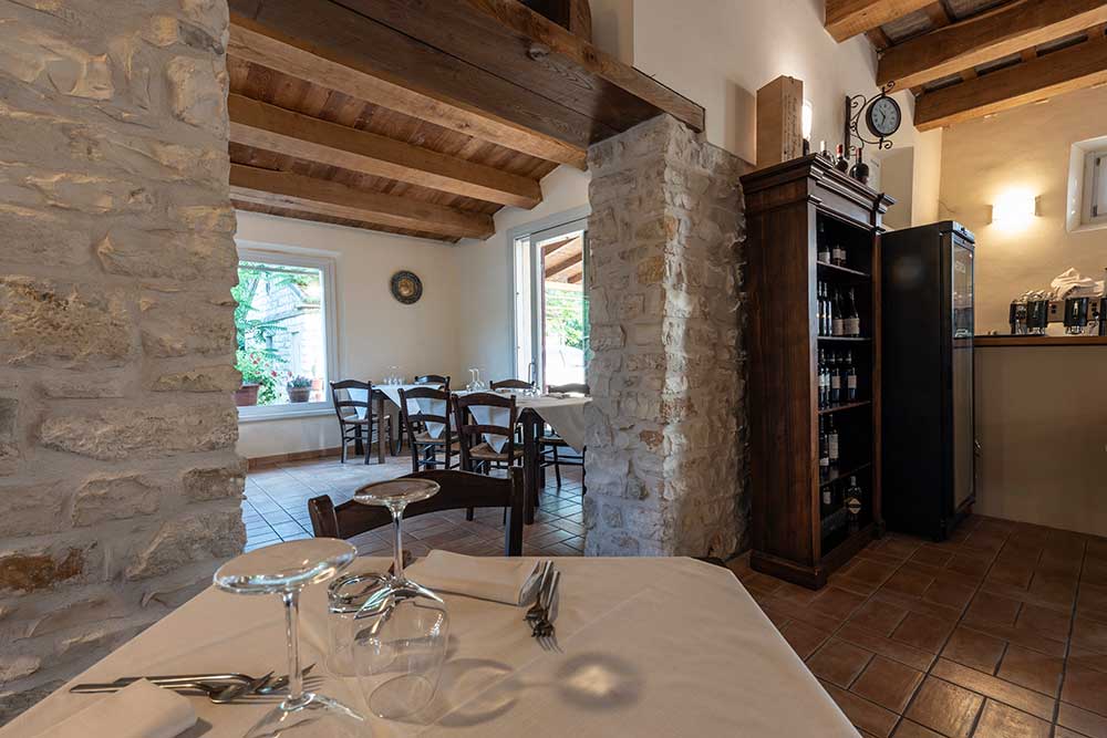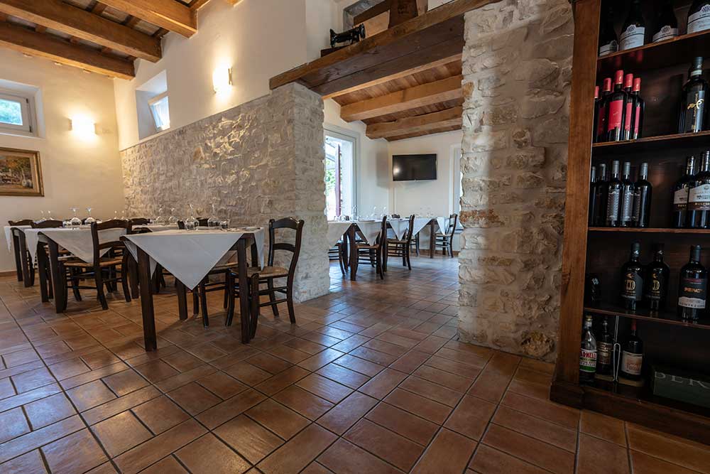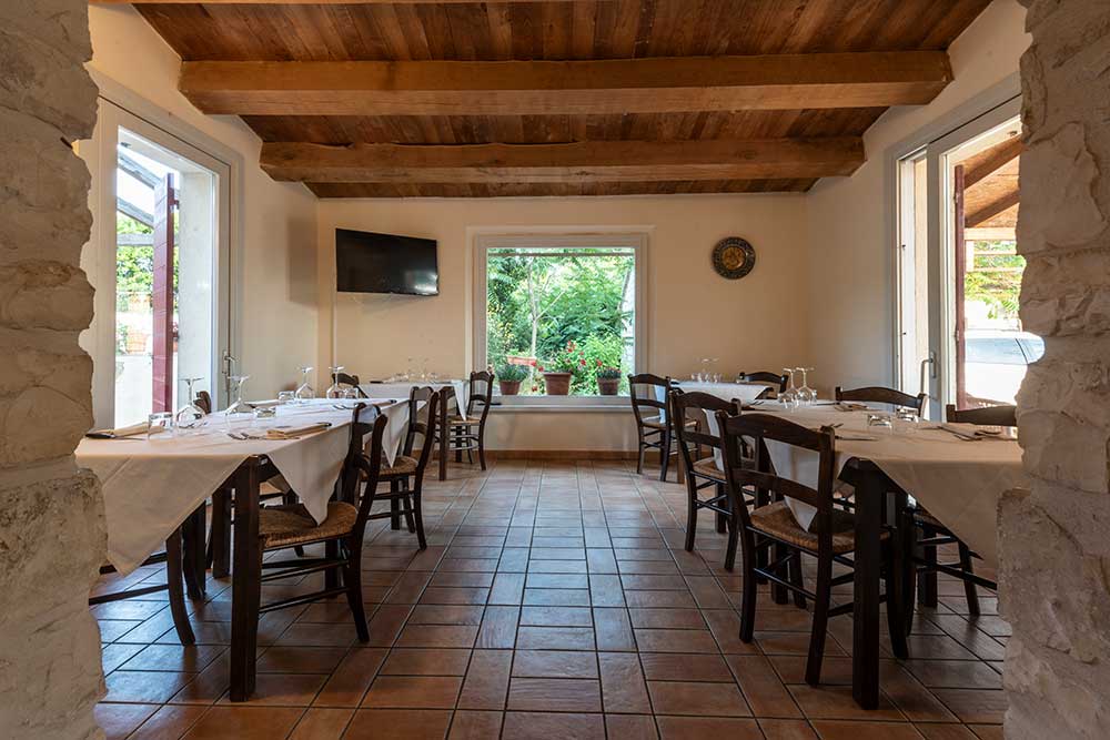 Puoi scegliere di mangiare nella sala interna, climatizzata, con le pareti in pietra del Conero che raccontano la storia del nostro casolare…