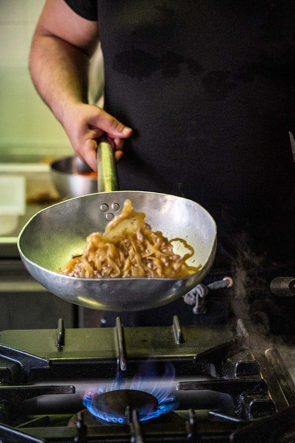 In cucina trovi Paolo, lo chef di Casa Rossi: una vita tra macelleria e rosticceria, un sapere fatto di mani esperte e attenzione al dettaglio.